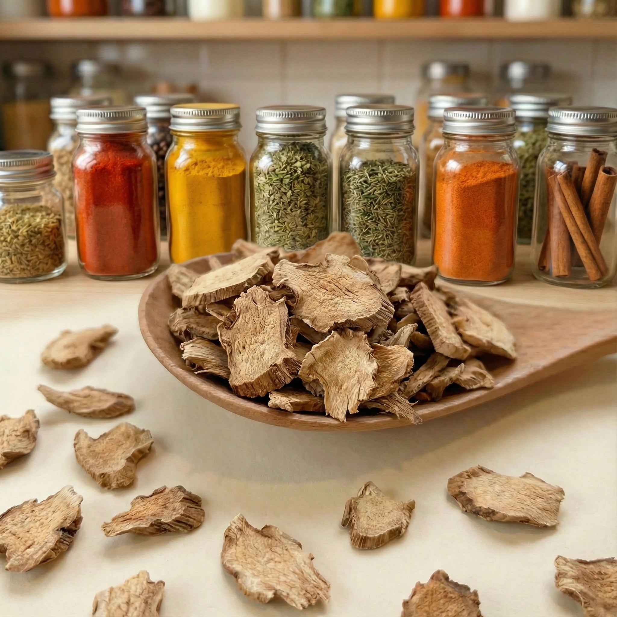 La galanga est une racine épicée et légèrement citronnée, proche du gingembre, mais avec des arômes plus subtils. Utilisée dans les cuisines thaïlandaise et indonésienne, elle est parfaite pour les soupes, currys et marinades, et est également connue pour ses vertus médicinales, notamment pour apaiser les troubles digestifs.