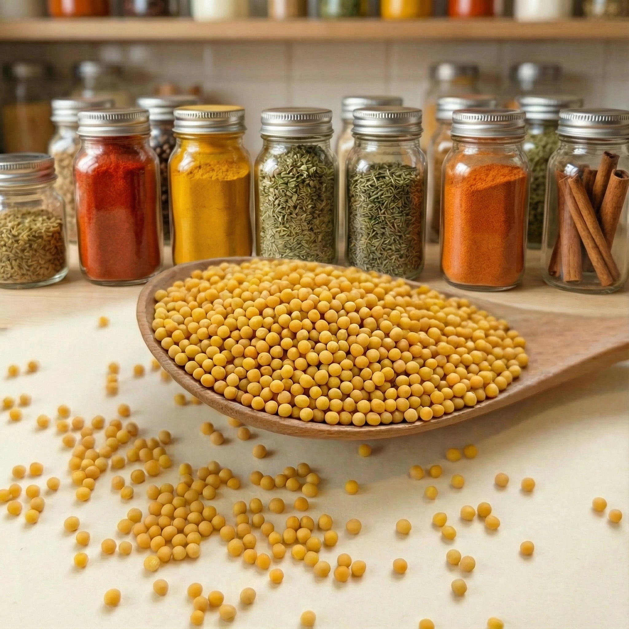 Avec son goût piquant mais doux, la moutarde jaune est une épice courante dans les cuisines occidentales, particulièrement dans les sauces, les vinaigrettes, et comme condiment pour les viandes et les sandwiches. Elle est également utilisée dans la préparation des marinades et des sauces pour les grillades.