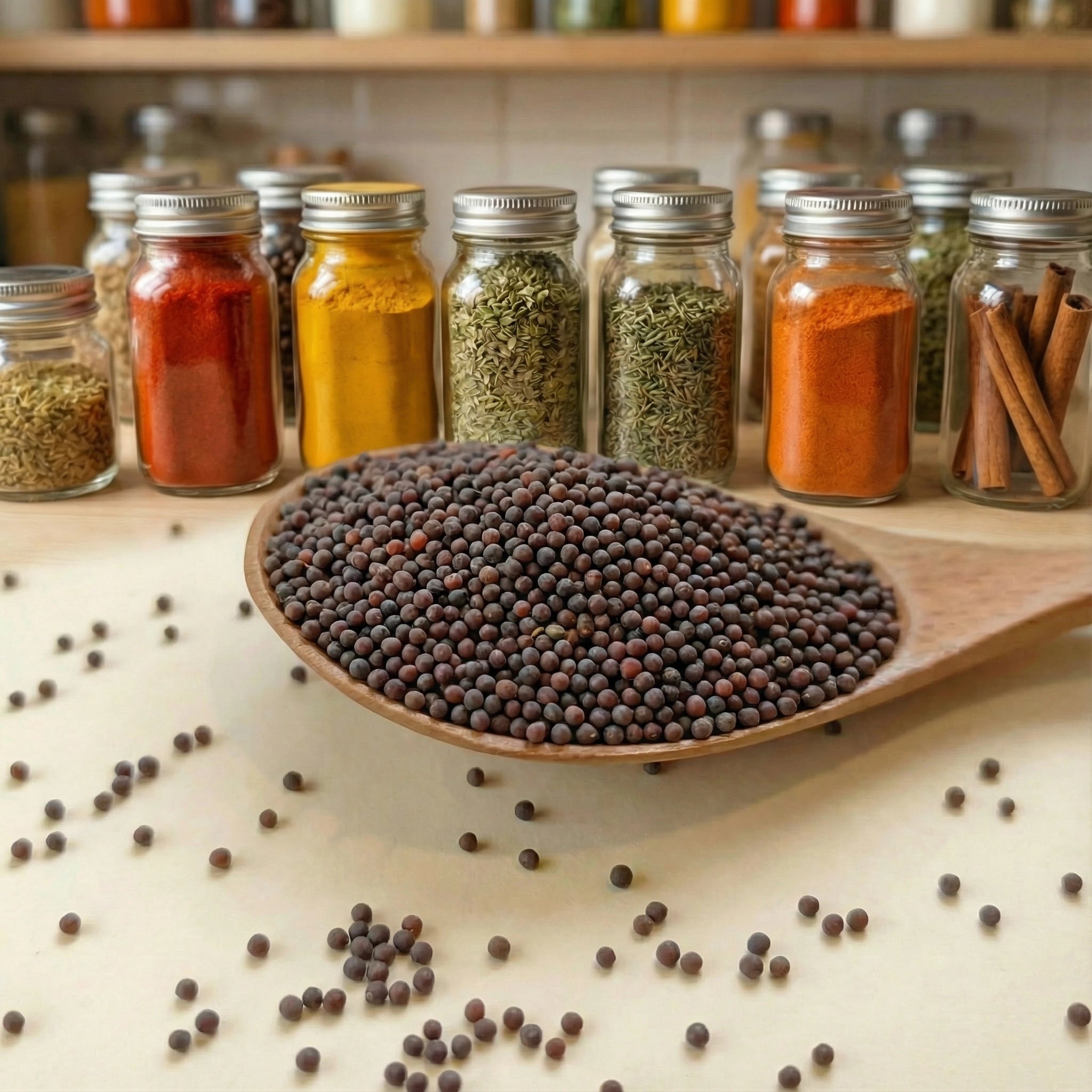 Dans la cuisine indienne, les graines de moutarde noire sont un ingrédient fondamental. Elles sont souvent utilisées dans une technique appelée tadka (ou tempering), où elles sont chauffées dans de l'huile chaude jusqu'à ce qu'elles crépitent et éclatent. Ce processus adoucit leur piquant et libère un arôme de noisette riche et complexe, qui sert de base de saveur à d'innombrables plats, notamment les currys, les dals (plats de lentilles), les chutneys et les légumes sautés.