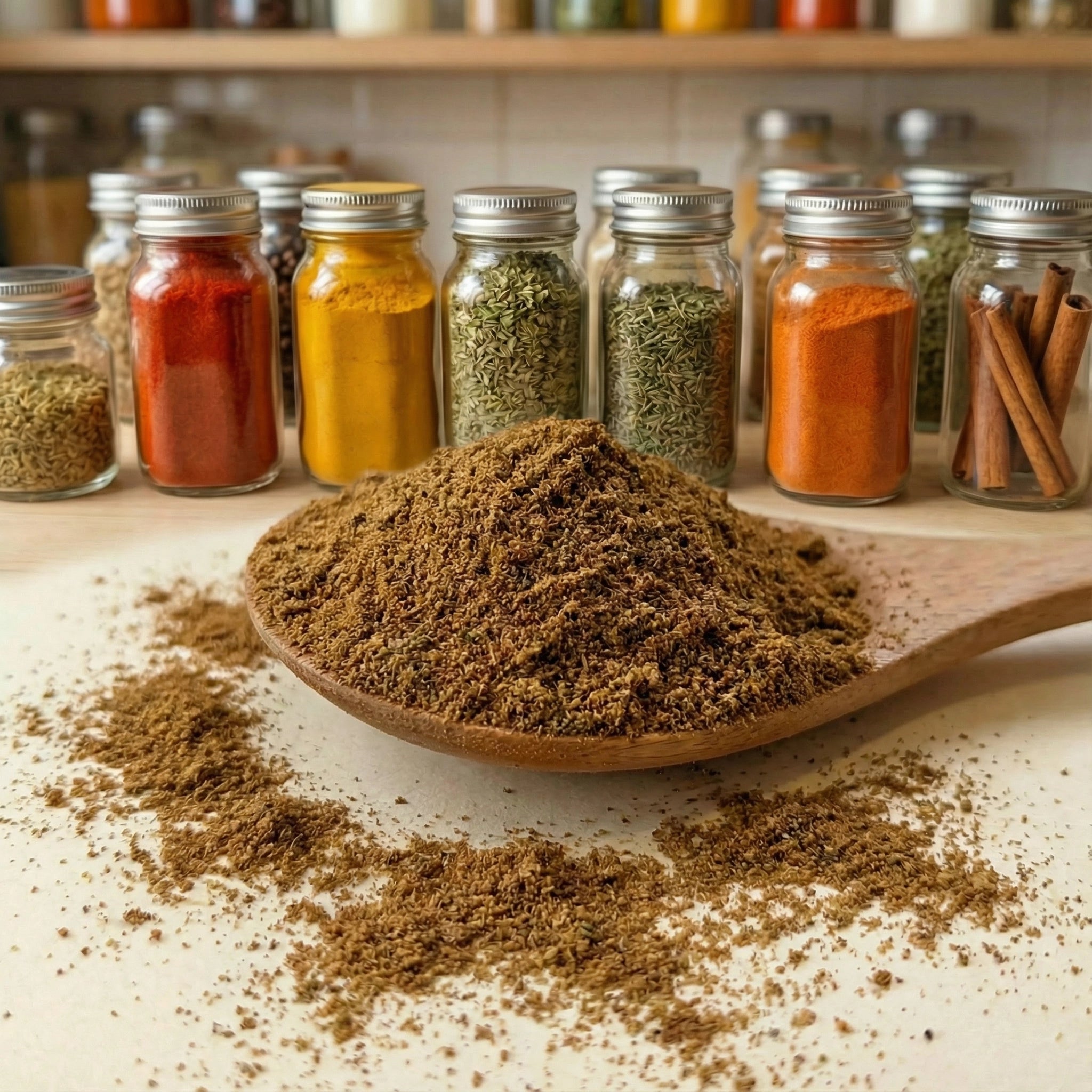 Le Garam Masala est souvent composé d'un mélange de cannelle, de cardamome, de cumin, de coriandre, de clou de girofle, et parfois de poivre noir, curcuma, moutarde, fenugrec ou de laurier, parmi d’autres épices. Ce mélange est soigneusement équilibré pour offrir une harmonie parfaite entre des saveurs riches et profondes, légèrement sucrées, épicées et chaudes. Selon les proportions et les variations régionales, le Garam Masala peut être plus ou moins relevé, mais il possède toujours cette chaleur agréable qui évoque la chaleur du soleil et des épices indiennes.
